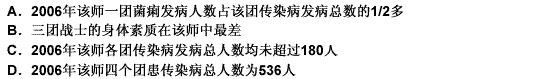 第 111 题2006年该师各团除菌痢外的传染病发病人数与菌痢发病人数的比例最接近5:2的是 ( )。