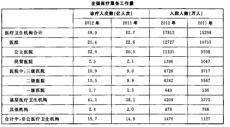2012年全国医疗卫生机构诊疗人次相比上年增长了( )。