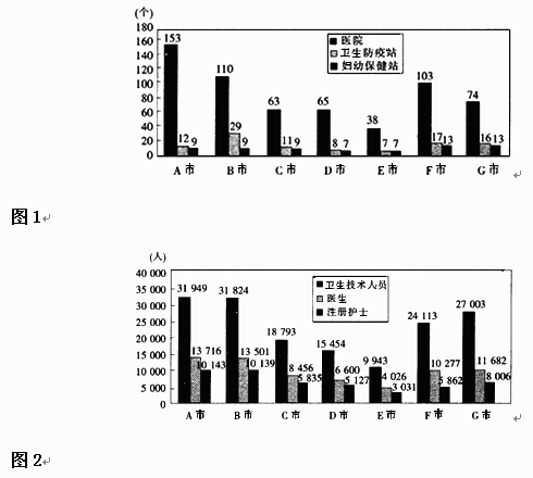 根据下面两图中某省对7个城市的卫生事业基本情况的统计回答121-125的问题(见图1、图2)