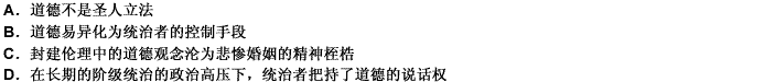 第 93 题把道德说成圣人立法,在很大程度上背离了道德。正如恩格斯所说的“没有爱情的婚姻是不道德的”中的不道德,恰恰是封建伦理中极力宣扬的“道德”。而这种所谓道德的阶级性,这种称谓意识形态的道德,只不过是伪道德,并不能证明道德在不用的阶级那里有不同的性质。