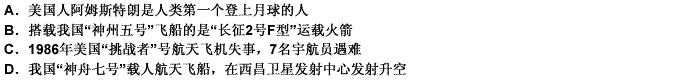 第 2 题下列有关航天科学常识表述不正确的是( )。