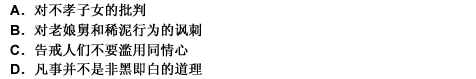 第 35 题在上海一档热门节目《新老娘舅》中,经常有不孝儿子对老娘舅诉说血泪史,工资1300,老婆又下了岗,一家三口住十几乎米……然后你就会神奇地发现自己的情感已经从对他不孝的愤怒转变成对他无能的无奈。最后的结论已经从理性的“不孝是错误的”,转变成完全不相于的“富而后知礼”的感慨。然后老娘舅就顺势和一把稀泥;既然你经济困难,那么姐姐就多承担点……等到节目播完,回过神来后才发觉:这算什么道理?穷就可以理直气壮地不赡养父母了吗?