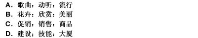 三、类比推理。先给出一组或多组相关的词,要求你在备选答案中找出一组与之在逻辑关系上最为贴近、相似或匹配的词。