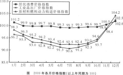 第 103 题 2009年原材料燃料动力购进价格指数的发展趋势是( )。