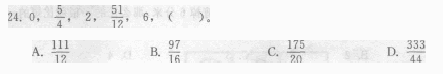 一、数字推理。给你一个数列,但其中缺少一项,要求你仔细观察数列的排列规律,从四个选项中,选择最合适的一项,使之符合原数列的排列规律。请开始答题: