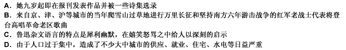 二、阅读理解:共25题。每道题包含一段文字或一篇短文,后面是一个完整的陈述。要求你在四个选项中选出一项来完成陈述。注意:答案可能是对文字内容的复述。有时则满足了陈述中其他方面的要求,你的选择应与所提要求应最相符合。