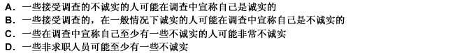 第 80 题在一项关于求职人员的调查中,2/5的人承认至少有一些不诚实。然而,这项调查可能低估了有不诚实行为的求职人员的比例,因为( ) 。