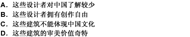 第 23 题远在异国他乡的国家大剧院、鸟巢以及央视大楼的设计者们,在对中国所知无多的情况下开始工作,令他们获得灵感的,既不是中国政府的规划意愿,也远非中国传统文化,这两者始终没有成为他们想象力和审美价值的来源,没有人规定他们该做什么不该做什么。