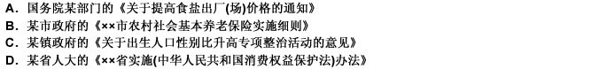 第 9 题下列规范性文件中不得设定行政许可的是( )。