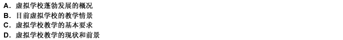第 35 题目前,虚拟学校如雨后春笋般蓬勃发展。在虚拟学校里,学生可以从虚拟图书馆下载课程内容;学生和教师在虚拟教室相会,进行“现场”辅导;学生按照要求完成相应的作业与练习,并通过电子邮件传递给辅导教师批改;教师给予相应的辅导;最后通过网上联机考试,获得结业。虚拟现实技术在教育和培训领域的应用(例如智能实验室、智能操作平台等)前景将十分广阔。