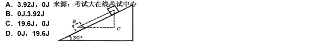 第 90 题.一个木块质量为2k9,在光滑斜面上由A滑到B,如下图所示。已知AB=40cm,斜面对木块支持力是17N,那么,在由A到B的过程中,重力和支持力各做功( )。