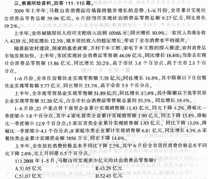 115.下列关于马鞍山市2009年上半年的消费品市场运行情况的说话中,哪一项不正确?