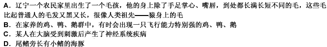 第 72 题返祖:指有的生物体偶然出现了祖先的某些性状的遗传现象。下列不属于返祖的是( )。