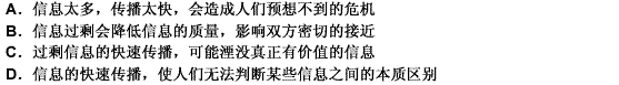 第 21 题美国思想家梭罗曾说过:“我们热切地挖掘了大西洋隧道,期望新旧大陆更为密切地接近,实际上传来的最新消息不过是阿德莱亲王打了个哈欠。”危险正是在这里。对于传媒来说,葛底兹堡大战和王室打哈欠没有本质的区别,这就有可能湮没了真正有价值的信息。文段引用名人的话是为了说明( )。