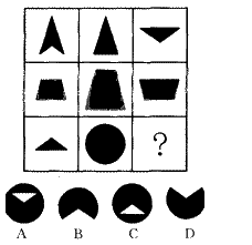 第 57 题每道题包含问题图形和可供选择的四个图形。问题图形具有一定的规律,也存在某种差异。要求你从四个选项中选择你认为最合适的一个。