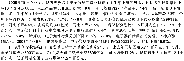 - D.2009年前三季度,在规模以上电子信息制造业重点监测的产品中仅计算机、显示器和彩电保持增长