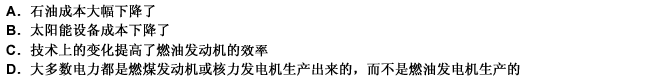 第 67 题在过去的10年里,技术的进步和设备成本的降低已经在费用上使得把太阳能直接转化为电力更为有效。但是,太阳能经济可行性的门槛(也就是要想使新的太阳能发电机比新的燃油发电机更为节约,每桶石油必须提高的价格)没有变,仍是35美元。