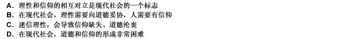 第 32 题在结构主义盛行的文化背景下,在功利取向为主导的市场经济中,人们缺乏理性向道德妥协的意识,迷信于理性计算,从而使得信仰与道德日渐荒漠化。信仰的缺乏必然造成人无法对生活及生命的意义进行完整解读,缺乏对规则的敬畏,从而信仰被理性“杀死”。