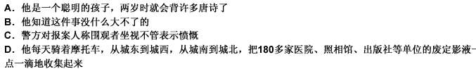 三、阅读理解。共15题。每道题包含一段文字,后面是一个不完整的陈述,要求你从四个选项中选出一项来完成陈述。注意:答案可能是对文字内容的复述,有时则满足了陈述中其他方面的要求,你的选择应与所提要求最相符合。