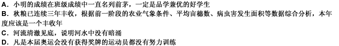 三、逻辑判断。共10题。每题给出一段陈述,这段陈述被假设是正确的,不容置疑的。要求你根据这段陈述,选出一个答案。注意:正确的答案应与所给的陈述相符合,不需要任何附加说明即可以从陈述中直接推出。