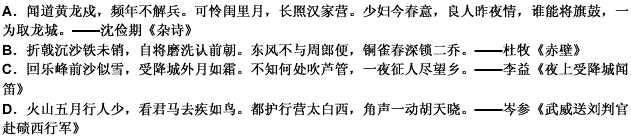 第 55 题边塞诗:指以军旅生活或边塞生活经历为题材,主要表现边塞风光、边疆战士艰苦生活、将士杀敌报国和建功立业的抱负、边疆将士思乡情思等主题。下列不属于边塞诗的是( )。