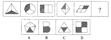 二、图形推理。共10题。每道题包含两套图形和可供选择的4个图形。这两套图形具有某种相似性,也存在某种差异。要求你从四个选项中选择你认为最适合取代问号的一个,正确的答案应不仅使两套图形表现出最大的相似性,而且使第二套图形也表现出自己的特征。