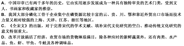 三、阅读理解。共15题。每道题包含一段文字,后面是一个不完整的陈述,要求你从四个选项中选出一项来完成陈述。注意:答案可能是对文字内容的复述,有时则满足了陈述中其他方面的要求,你的选择应与所提要求最相符合。