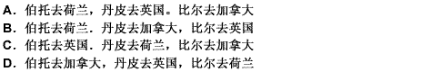 第 78 题旅行社刚刚为三位旅客预订了飞机票。这三位旅客是荷兰人比尔、加拿大人伯托和英国人丹皮。他们三人中一个去荷兰、一个去加拿大、一个去英国。据悉比尔不打算去荷兰,丹皮不打算去英国,伯托既不去加拿大,也不去英国。