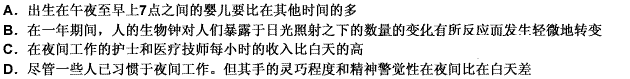 第71题人体在深夜里要比在白天分泌更多的抑制疼痛的荷尔蒙。因此,在夜间进行手术的外科病人需要较少的麻醉剂。因为大量的麻醉剂会对病人造成较大的危险,所以如果手术经常在夜间进行,就会减少外科手术的风险。
