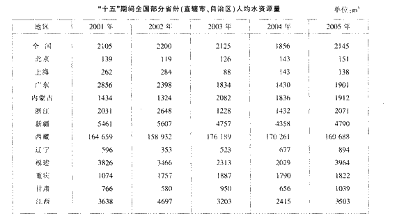 第 86 题南上表可以看出.整个“十五”期间,人均水资源量一直低于全国平均水平的省份(直辖市、自治区)有: