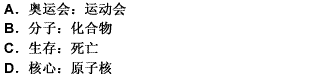 三、类比推理。每道题先给出一组相关的词,要求你在备选答案中找出一组与之在逻辑关系上最为贴近、相似或匹配的词。