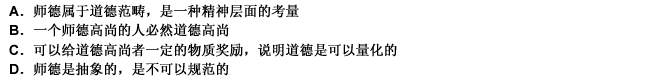 第 79 题德,发自于内心,是一种精神层面的考量;师德,是教师职业道德和职业操守的象征,是不计名利、不计报酬的道德抽象。我们形容一个人道德高尚,可以给其荣誉,或者给其一定的物质奖励;同样,形容一个教师的师德高尚,我们可以给其名师称号,给其名誉奖励或者物质嘉奖。