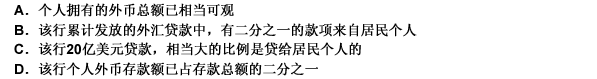 第 9 题中国银行北京分行的个人外币存款额已突破10亿美元;在该行累计发放的20亿美元外汇贷款中有相当大的比例来自居民个人存款。