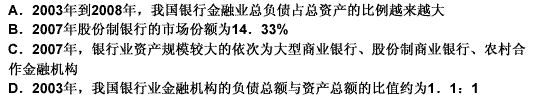 第 81 题2008年银行业金融机构的负债总额占资产总额的比例为( )。