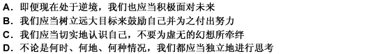 第 29 题如果一直往上看的话,就会觉得一直在下面;如果一直向下看的话,就会觉得一直在上面;如果一直觉得在后面,肯定是一直在向前看。目光决定不了位置,但位置却永远因为目光而存在。关键是,即使我们处于一个确定的位置,目光却仍然可以投往任何一个方向。符合这段文字寓意的是( )。