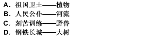 三、类比推理。每道题先给出一组相关的词,要求你在备选答案中找出一组与之在逻辑关系上最为贴近、相似或匹配的词。