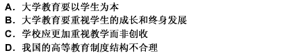 第 48 题以人为本,就是以学生为本。因为有学生才有老师、才有学校。大学最重要的产出首先是学生,尤其是本科生,要为学生的成长和终身发展服务。因而,大学是否以人为本最外在的表现,是看它是否重视教学,是否将本科教学放在优先的重要位置,而不是把建大校园、经营创收、学术统计等作为最重要的目标。提高质量的内涵,首先是对学生负责,而不是为了学校之间的竞争、为了学校的名次和声誉。然而,令人遗憾的是,我们的制度安排似乎并非如此,以至于今天让教授为本科生上课成为高难度的管理。