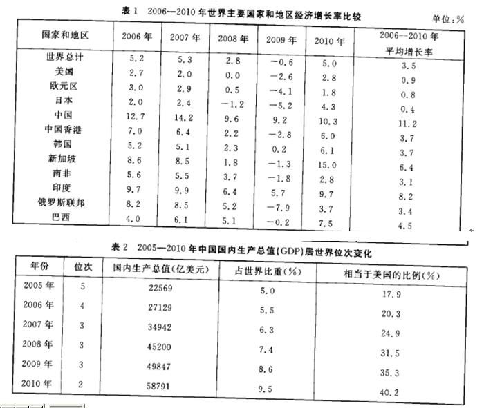 • D.中国与美国的差距逐步缩小,中国GDP相当于美国GDP的比例从2005年的17. 9%上升至2010年的40. 2%