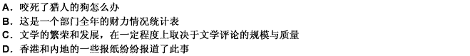 三、阅读理解:共15题。每道题包含一段短文,短文后面是一个不完整的陈述,要求你从四个选项中选出一项来完成这一陈述。注意:供选择的答案有时可能是对短文内容的一个复述,有时则满足了陈述中其他方面的要求,你的选择应与所提要求最相符合。