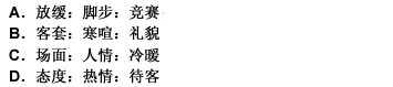 三、类比推理。共10题。先给出一对相关的词,要求你在备选答案中找出一对与之在逻辑关系上最为贴近或相似的词。