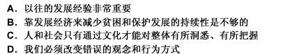第 76 题世界银行的一位副行长有这样一段高论同样给我们以启发,他说:“以往的发展经验给予我们两个至关重要的启示:一是仅仅依靠发展经济来减少贫困和保护发展的持续性是不够的。另一个教训是,技术绝对不是解决所有问题的办法。这些提醒我们必须改变错误的观念和行为方式,而改变的源泉就是文化。”