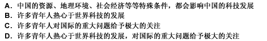 第 55 题中国的资源、地理环境、社会经济等等特殊条件,都会影响中国的科技发展。在我与青年人接触中,许多青年人热心于世界科技的发展,他们有志成为世界学者、国际学者,对国际的重大问题给予极大的关注。为此,我要求他们多研究中国的重大问题。