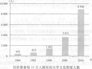 1964~2010年,每10万人拥有的大学文化程度人数在人口普查中的历次平均增长率为( )。