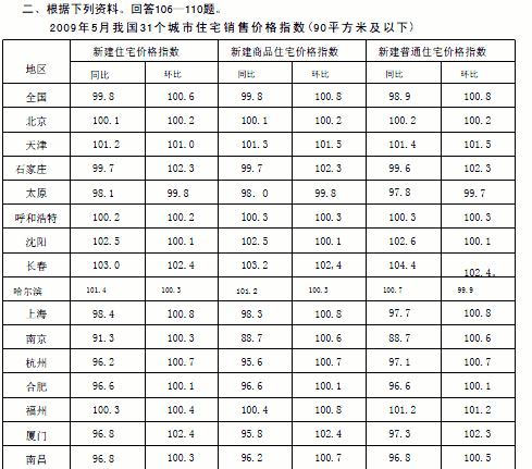 110.2009年5月,就全国而言,关于31个大城市住宅价格指数表述正确的是( )。