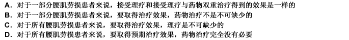 第 79 题在接受治疗的腰肌劳损患者中,有人只接受理疗,也有人接受理疗与药物双重治疗。前者都可以得到与后者相同的预期治疗效果。对于上述接受药物治疗的腰肌劳损患者来说,此种药物对于获得预期的治疗效果是不可缺少的。如果上述断定为真,则以下哪项一定为真?( )
