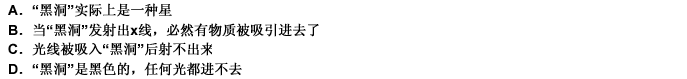 第 39 题“黑洞”其实不是洞,是光出不来的星。这种星密度更高,引力场特别强,强到光线被吸住射不出来,只有当其他物质被吸引掉进去时才发光,发射出X线。