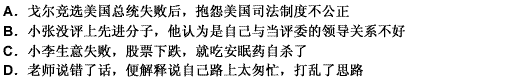 第 76 题文饰作用是指人们在受挫折后会想出各种理由原谅自己或为自己的失败辩解的现象。下列选项中不属于文饰作用的是( )。