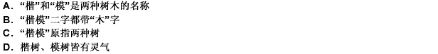 第 27 题楷树,果实椭圆形,红色,木材细致。相传这种树最早生长在孔子墓旁,树干挺拔,枝繁叶茂,似为众树的榜样。模树,春天青翠碧绿,夏季赤红如血,秋日变白,冬日变黑,因其色泽纯正,“不染尘俗”也为诸树之榜样,相传此树最早生长在周公的墓旁。这两种树分别称之为“楷”和“模”,以树喻人,故把人的模范行为称之为“楷模”。这段文字意在说明( )。