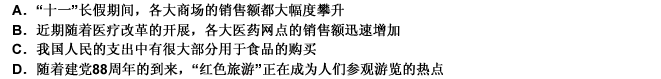四、逻辑判断。每题给出一段陈述,这段陈述被假设是的,不容置疑的。要求你根据这段陈述,选择一个答案。注意:正确答案应与所给的陈述相符合,不需要=任何附加说明可以从陈述中直接推出。