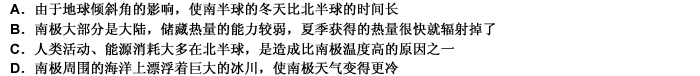 第 32 题据科学家观测,北极的年平均气温在8℃左右,而南极的年平均气温要比北极低得多,在-57℃左右,造成南极比北极冷的原因是( )。